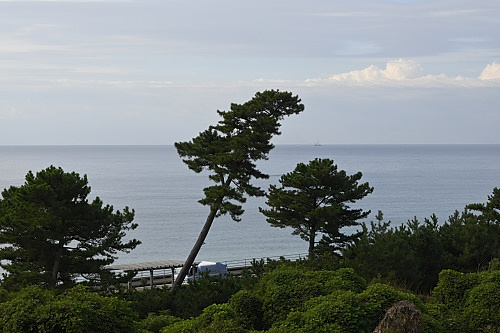 桂浜に到着。とさでん交通MY遊バスも写真左に停車中。MY遊バスは路線バスと