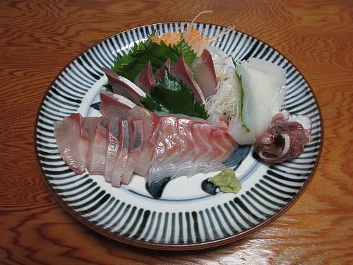 親戚一同が集まる。鯛、はまち、いかの刺身