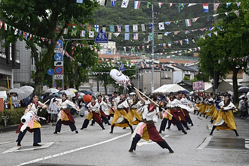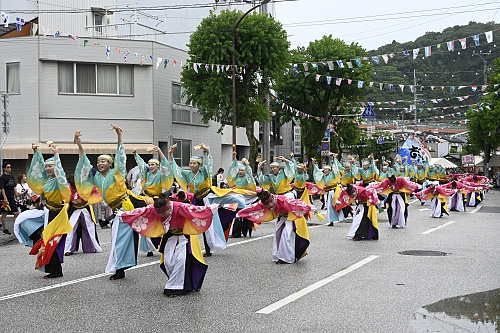 昭和29年の第1回の参加人数は750人、参加団体は21団体。その後、第30回にはついに踊り子人数1万人を突破しました。“よさこい”は絶えず新しいものを取り入れ、チームの個性化はますます進んでいます。伝統的な正調音楽からバンド演奏が増え、髪型や衣装も派手さを増しています。振り付けもサンバ調、ロック調、古典の踊りと工夫を凝らしています。老若男女による統制のとれたダイナミックは踊りは、見物人を飽きさせないお祭りです。