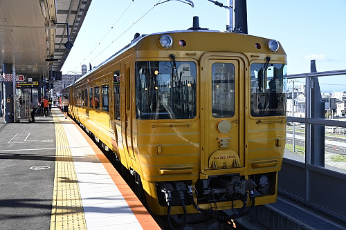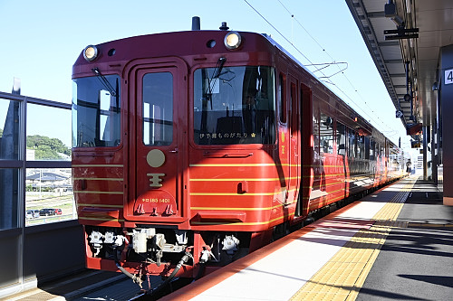 松山駅4番のりばで出発を待つ「伊予灘ものがたり」大洲編