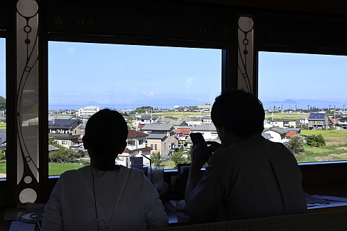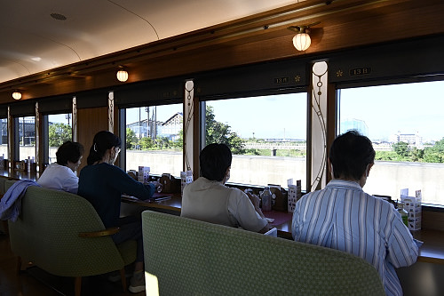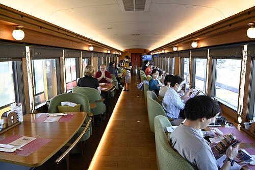 座席は、車窓側を向いているので、存分に景色を楽しめる。