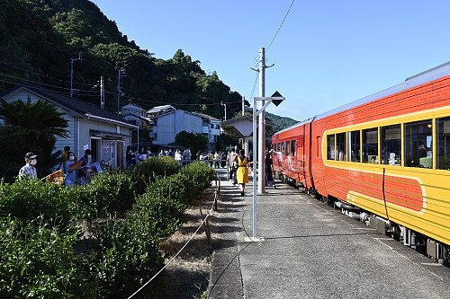 下灘駅出発時のお見送り。