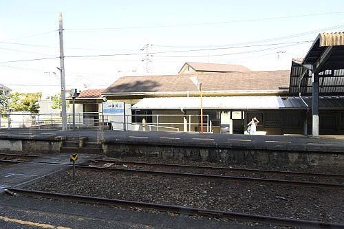 喜多灘駅をゆっくりと通過。伊予市と大洲市の境界が駅内にある。