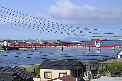 長浜町内にある「赤橋」(可動橋)が見えた。