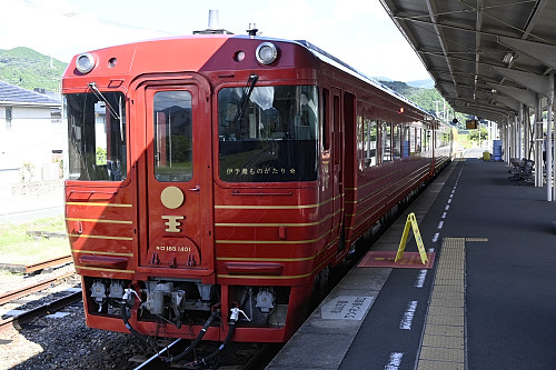 伊予大洲駅に到着した「伊予灘ものがたり」