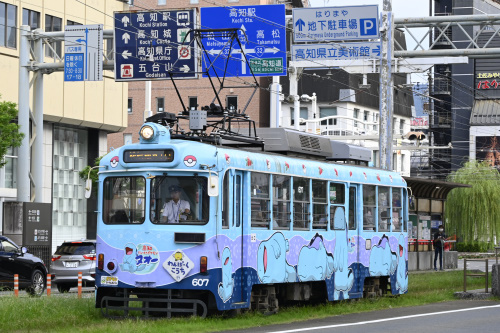 高知と言えばやっぱりこの電車ですね。600形604号 はりまや橋にて