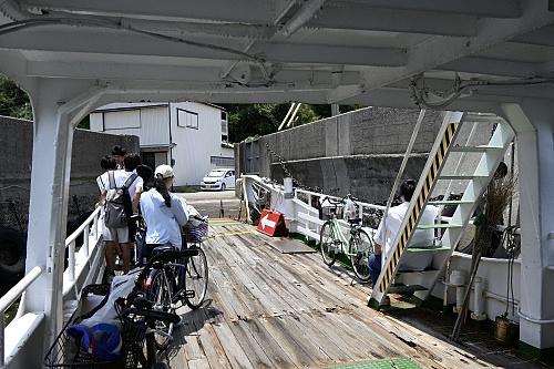 高島に到着。乗客が降りるとすぐに折り返し便への乗客が乗船。
