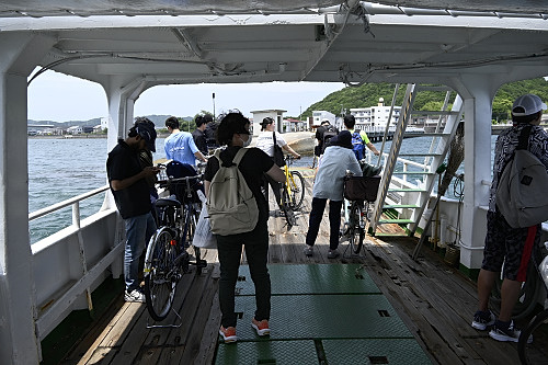 続々と乗客が集まる。自転車利用が多い。